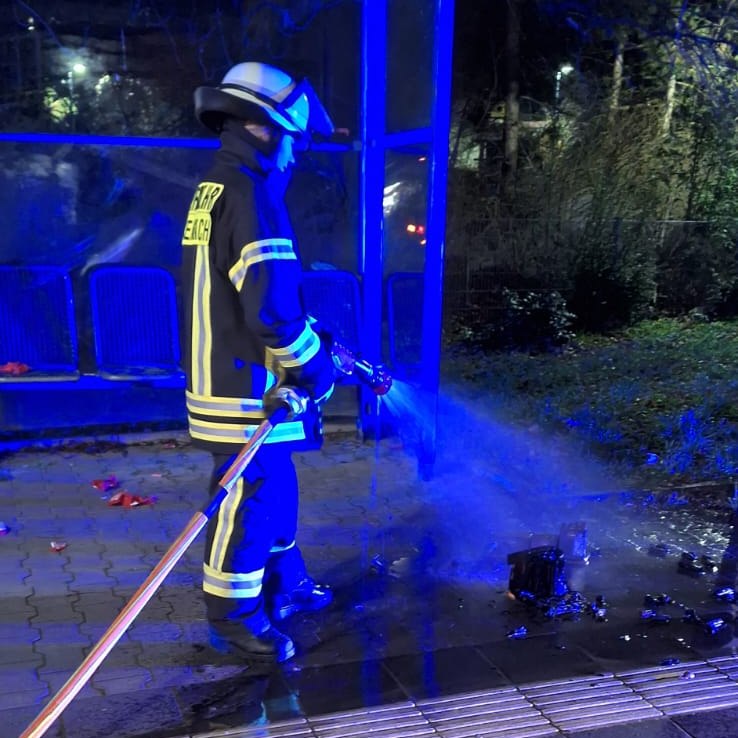 Am Donnerstag, den 01.01.2026 wurde die Feuerwehr Bickenbach zu einer brennenden Feuerwerksbatterie in die Hügelstraße alarmiert. Dieser wurde zunächst unter einem öffentlichen Mülleimer hervorgezogen.