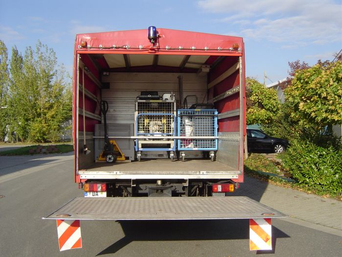 Transportfahrzeug für die in Gitterboxen bzw. Rollcontainern modular gelagerten Gerätschaften. Das Fahrzeug wird über seine Ladebordwand je nach Einsatzauftrag mit maximal 6 Gitterboxen bzw. Rollcontainern bestückt. Außerdem dient es nach Einsätzen für den Rücktransport der gebrauchten / verunreinigten Gerätschaften.